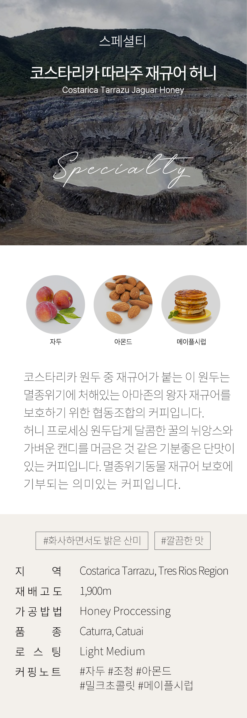 스페셜티 원두 코스타리카 따라주 재규어 허니 (1Kg) 54,800원 / 배송비 : 3,000원 주문시결제(선결제)